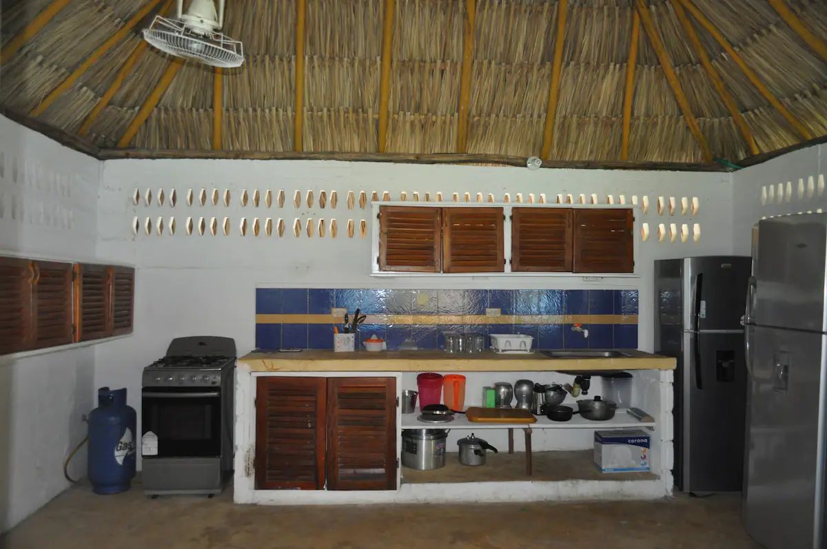 - Cocina exterior compartida excelente dotación (Estufa, horno, nevera, utensilios de cocina)